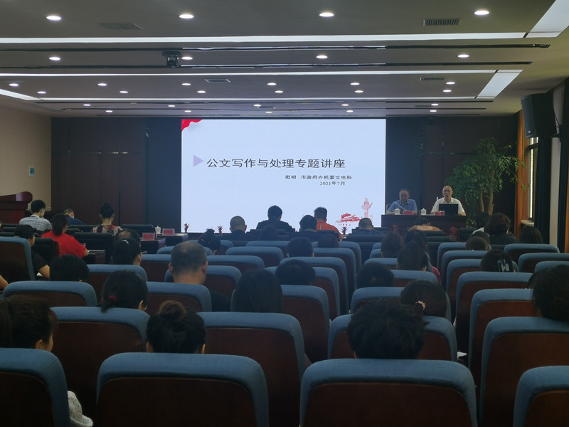 此次培訓特邀市政府辦機要文電科科長陽明進行專題授課。他以工作需求為導向,用通俗易懂的語言圍繞公文釋義、公文種類、公文格式、行文規(guī)則、公文擬制、公文辦理等六個方面進行了系統(tǒng)、詳細地講解。