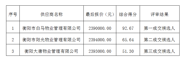 成交供應(yīng)商名稱:衡陽(yáng)市白馬物業(yè)管理有限公司