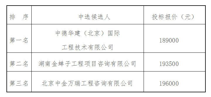 弘福雅苑項目可研服務(wù)單位采購于2022年3月25日上午9時00分(北京時間)進行了比選開標、評標活動,本項目采用“低價中標法”,經(jīng)評審小組綜合評審,現(xiàn)將中選候選人排名結(jié)果公示如下: