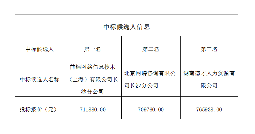 2022年衡陽市國資系統(tǒng)人才引進項目中介機構中標候選人公示