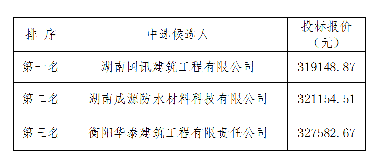 房屋維修工程中選候選人公示