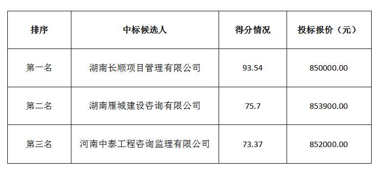 衡陽市高新區(qū)弘湘雙創(chuàng)智造基地(眼鏡小鎮(zhèn))-員工公寓項目工程監(jiān)理服務(wù)項目 中標候選人公示