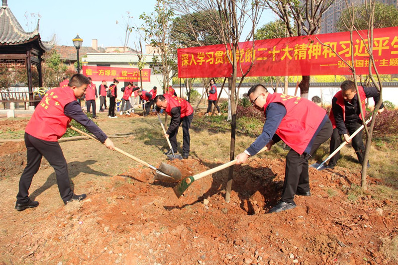 黨建“紅”引領(lǐng)生態(tài)“綠”,弘湘國投開展 “主題黨日+學(xué)雷鋒”植樹活動