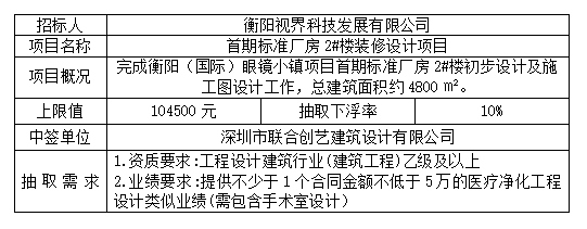 首期標(biāo)準(zhǔn)廠房2#樓裝修設(shè)計(jì)項(xiàng)目抽取結(jié)果公示