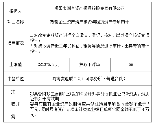 改制企業(yè)資產(chǎn)清產(chǎn)核資與租賃資產(chǎn)專項(xiàng)審計(jì)抽取結(jié)果公示