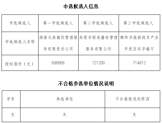 衡陽國(guó)投集團(tuán)員工食堂勞務(wù)承包服務(wù)單位公開比選中選候選人公示